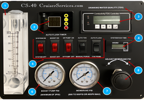 The Cruiser Services CS-40 piston pump watermaker, continues the evolution of piston pump watermakers with two decades of Rich’s real-world manufacturing , customer support and service experience.  All the small details and “system wants” Rich wanted to incorporate into his own watermaker over the years are now a reality and come standard.  With two decades of experience, years out cruising and living aboard, Rich knows what works and importantly what doesn’t work in the harsh marine environments. This allows Cruiser Services piston pump watermaker’s to have the Industry’s Best  4-Year Warranty, with complete 7-Day-A-Week technical support and service.